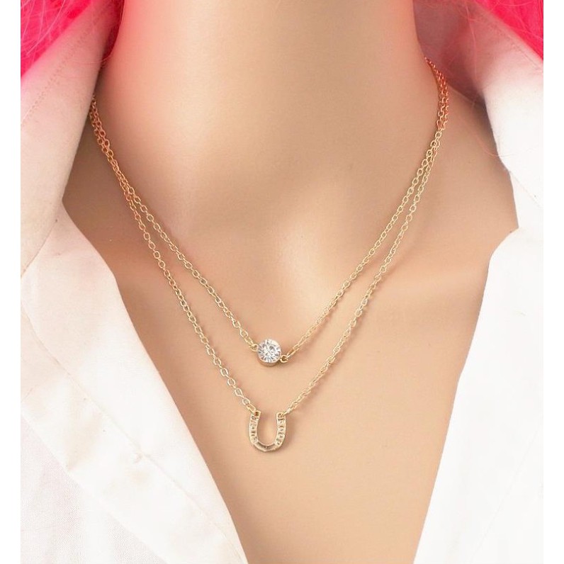 Kalung Wanita Lapis Emas Bola Permata Aksesoris Fashion KLE41