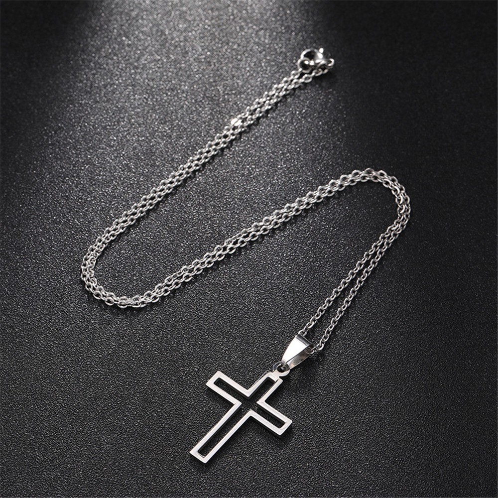 Harga Kalung Salib Baja Titanium | Wanita Gadis Simbol Kristen Liontin Perhiasan Leher Stainless Steel