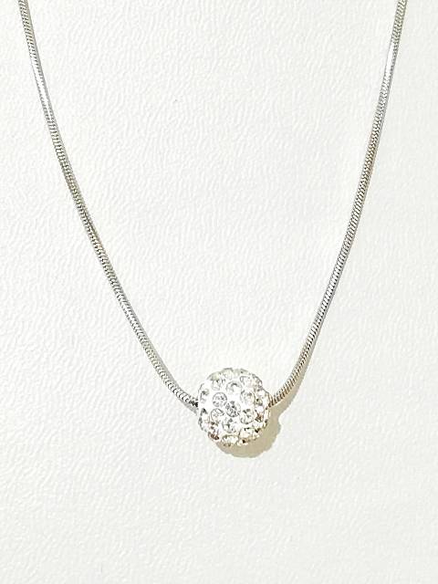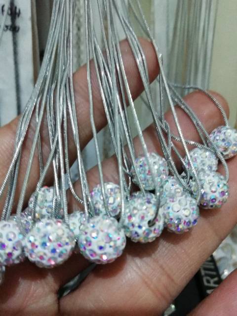 [Bayar Di Tempat] Kalung Wanita Titanium Silver Liontin Bola Kristal Anti Karat / Luntur Terbaru