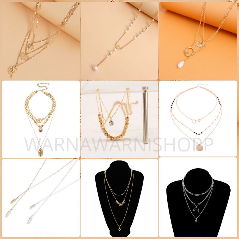 Kalung Rantai Multilayer Liontin Gembok Aksesoris Hijab Fashion Wanita Korean Style Layered Necklace Part 2