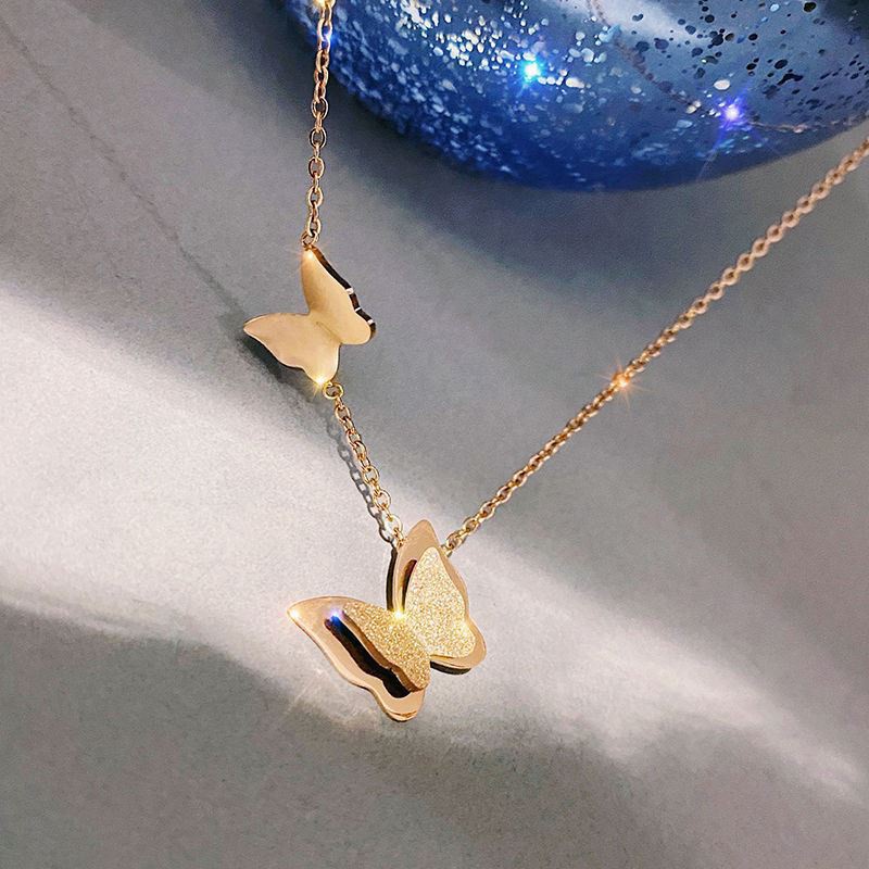 Harga Kalung Titanium Wanita Anti Karat Liontin Kupu Lapis Emas 18K Korea Perhiasan