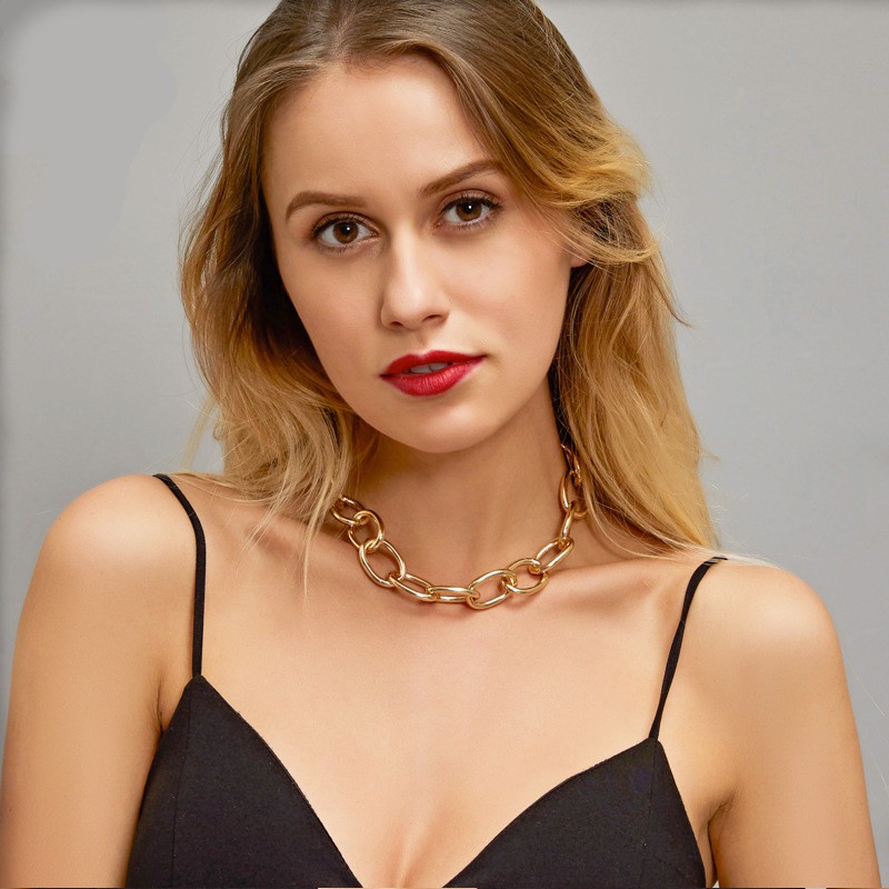 Kalung Rantai Tebal Yang Berlebihan Kalung Punk Street Retro Kalung Wanita Single Layer Vintage