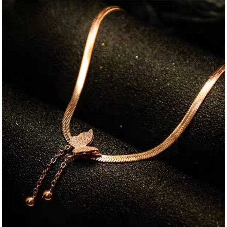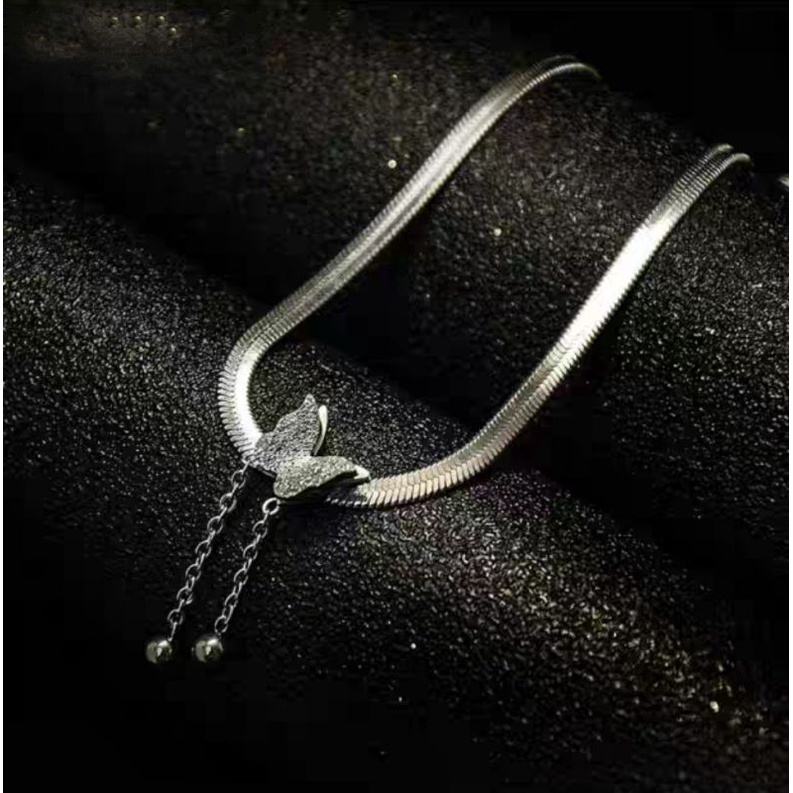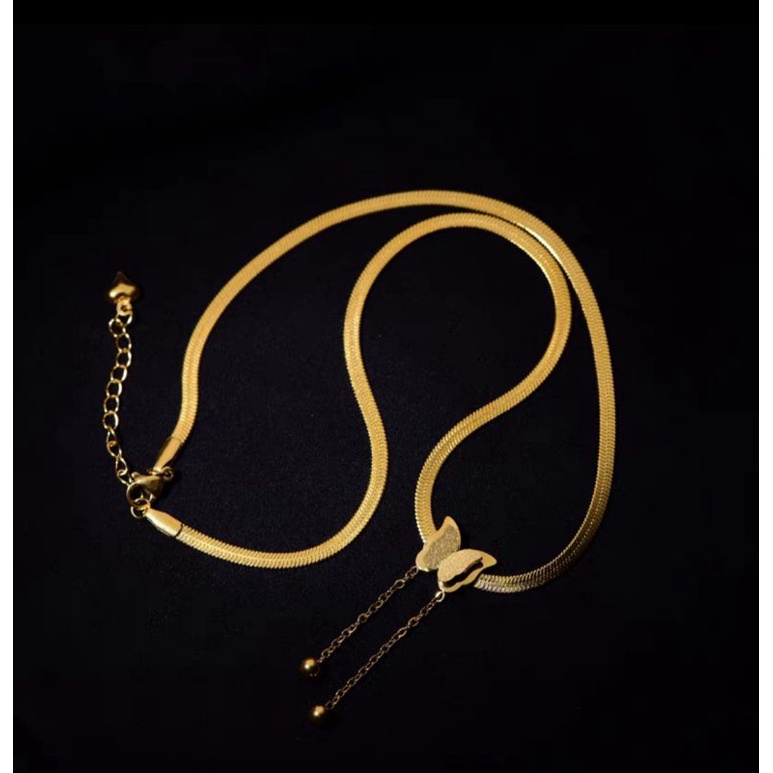 Kalung Rantai Ganda Liontin Kupu-Kupu Bahan Alloy Hias Berlian Imitasi Untuk Wanita