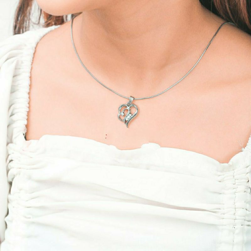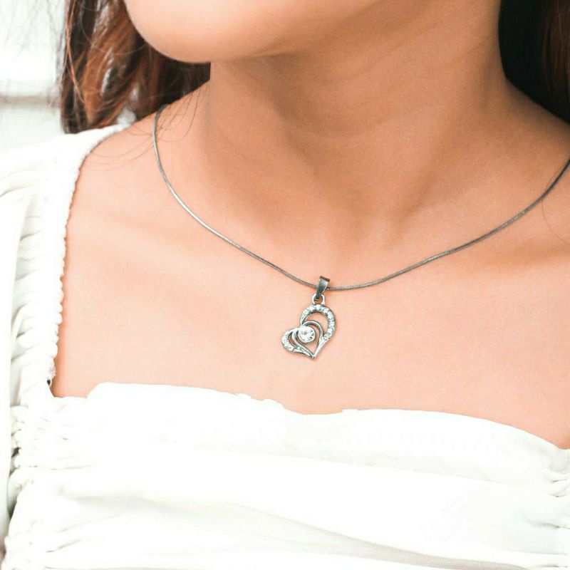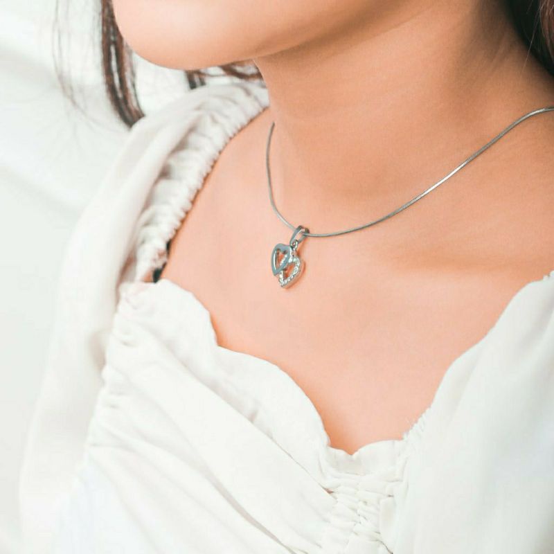 Harga KALUNG WANITA ANTI KARAT ANTI LUNTUR SILVER PERAK IMPORT MODEL LOVE PERMATA POUCHAKSESORIS PERHIASAN