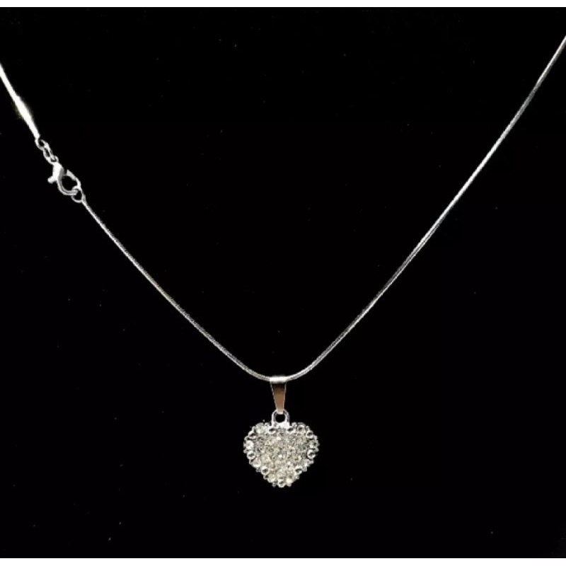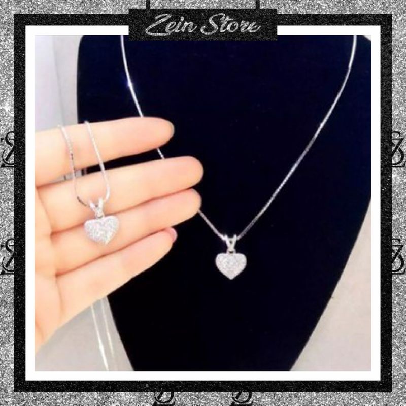 [Bayar Di Tempat] Kalung Wanita Titanium Silver Terbaru Liontin Permata Bulat Anti Karat / Luntur