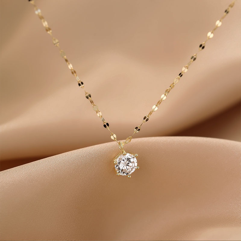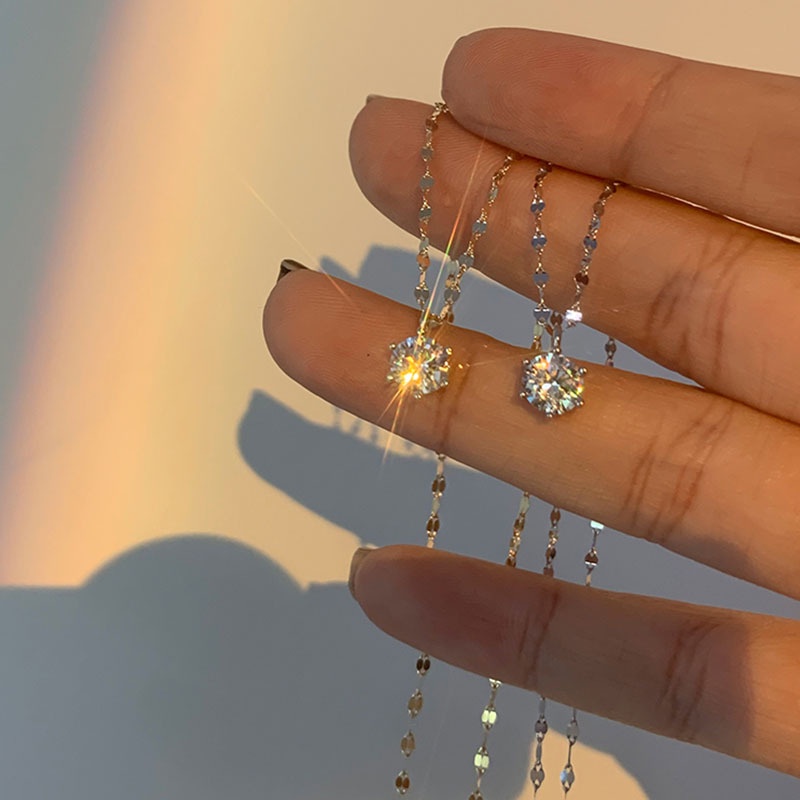 Kelebihan - Kelebihan membeli Korean Single Diamond Pendant Necklace Clavicle Chain 2021 New Simple Temperament Simple Jewelry Women Ladies di Toko ini