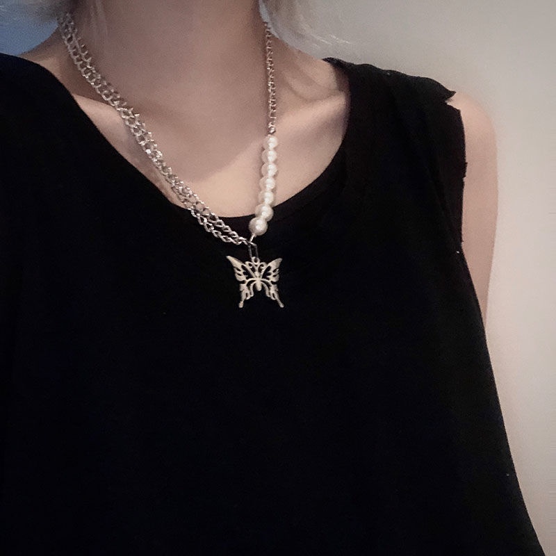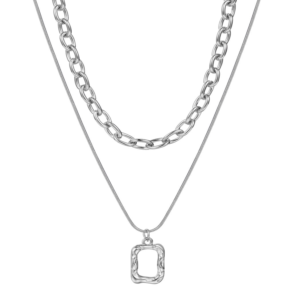 Women Fashion Retro Pearl Metal Korean Style Lock Necklace Multilayer Pendant Gold Chain Choker Jewelry Accessories