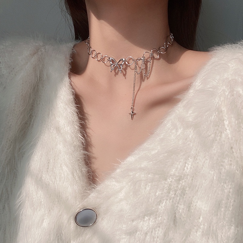 Kekurangan - Kekurangan membeli Korean Style Pearl Necklace Butterfly Punk Silver Chain Heart Shape Choker Women Fashion Jewelry Accessories di Toko ini