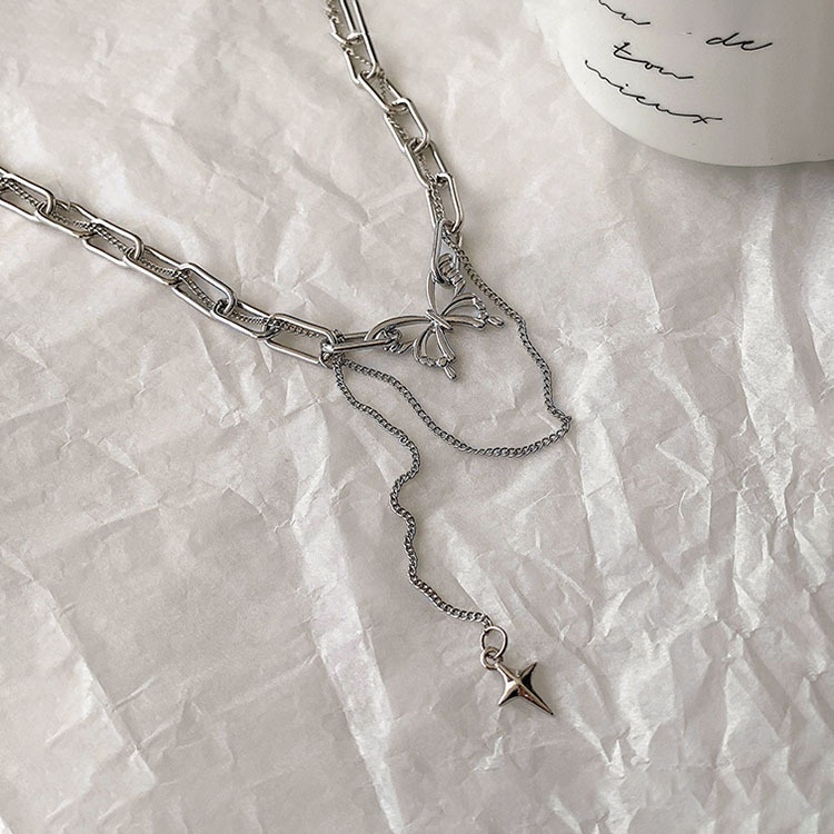 Harga Korean Style Pearl Necklace Butterfly Punk Silver Chain Heart Shape Choker Women Fashion Jewelry Accessories