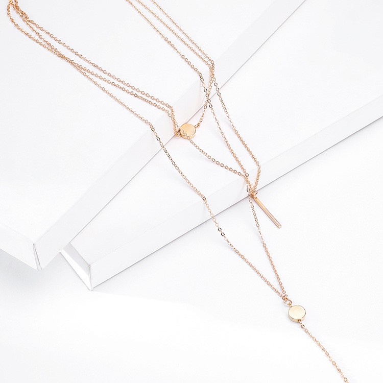 Giselle Triple Layer Plat Coin Korean Necklace Kalung Korea Tiga Lapis Rantai Kepribadian