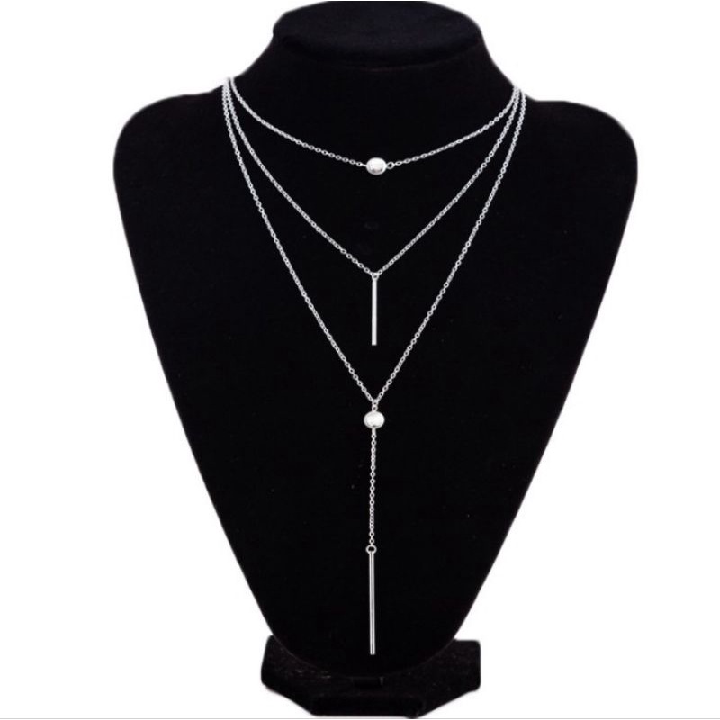 Harga Maurice Kalung Multilayer Rumbai Panjang Rantai Pendek Tiga Layer Perhiasan Hijab Fashion Wanita Kekinian Selebgram 2021 Korean Style Simple Accessories Fashion Three Layer Ladies Necklace