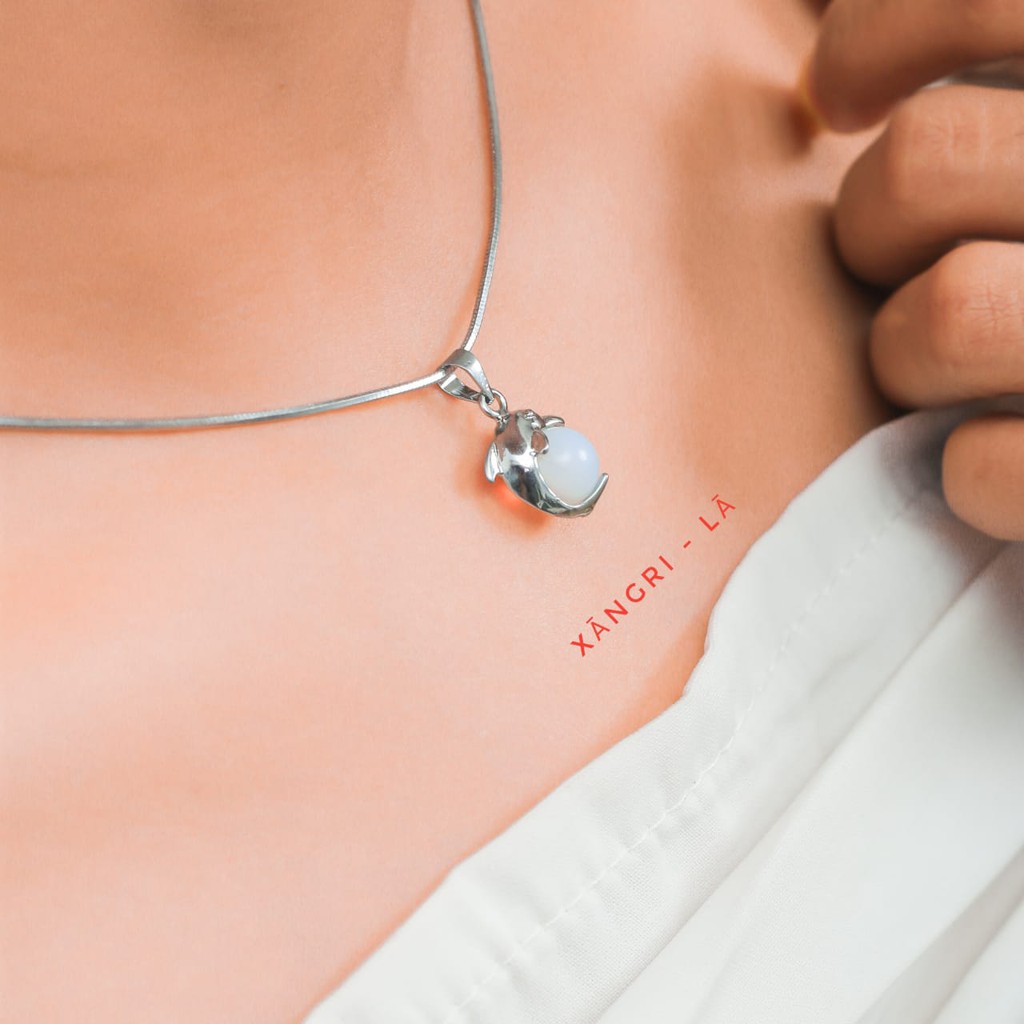 [Bayar Di Tempat] Kalung Wanita Titanium Silver Liontin Batu Giok Terbaru Anti Karat / Luntur