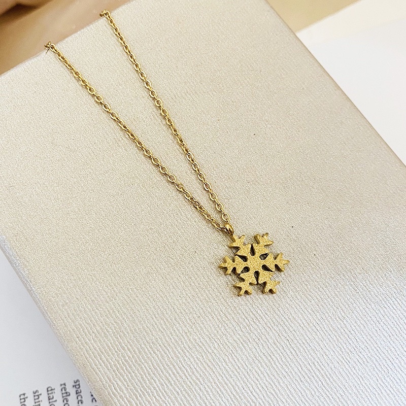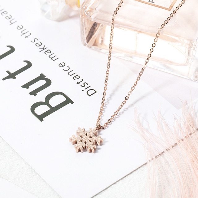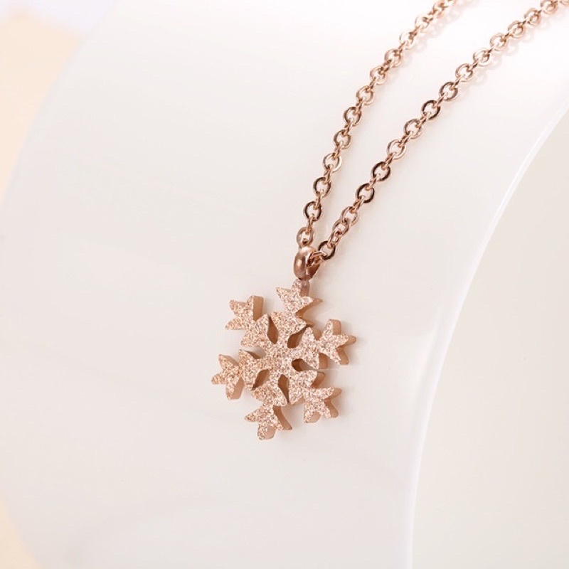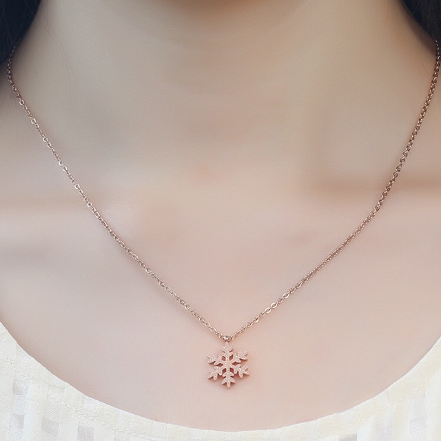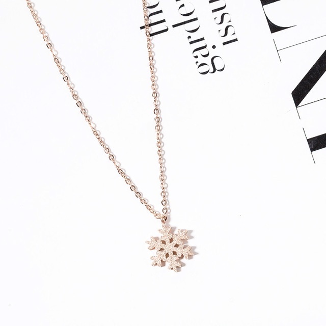 Harga 292# LS Kalung Wanita titanium lapis emas 18k model Ornamen Salju rosegold