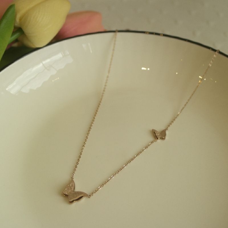 235# Kalung Wanita titanium lapis emas 18k model Couple Love / Sepasang Hati rosegold