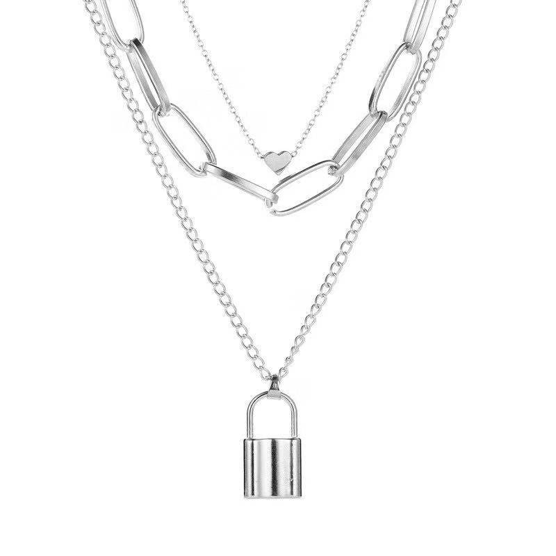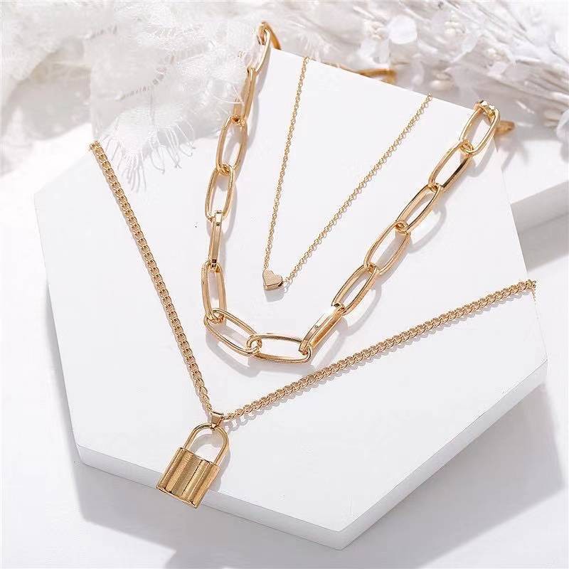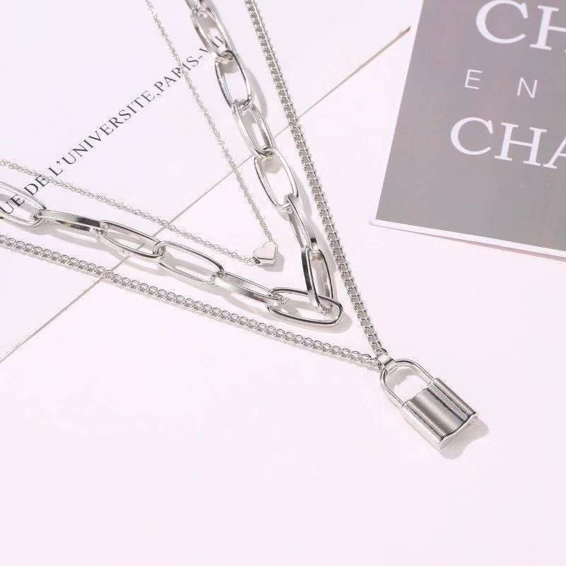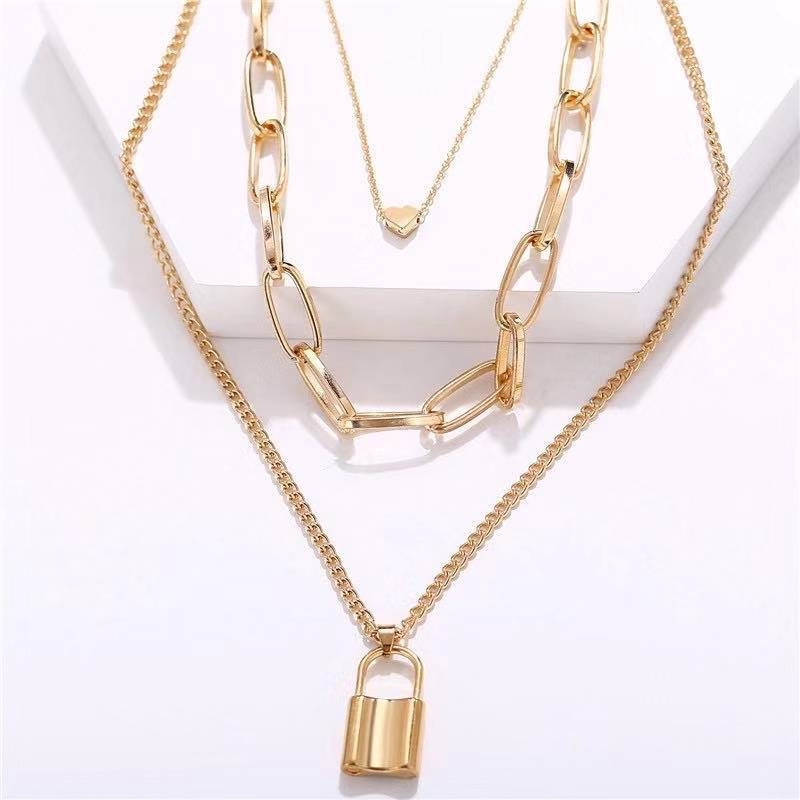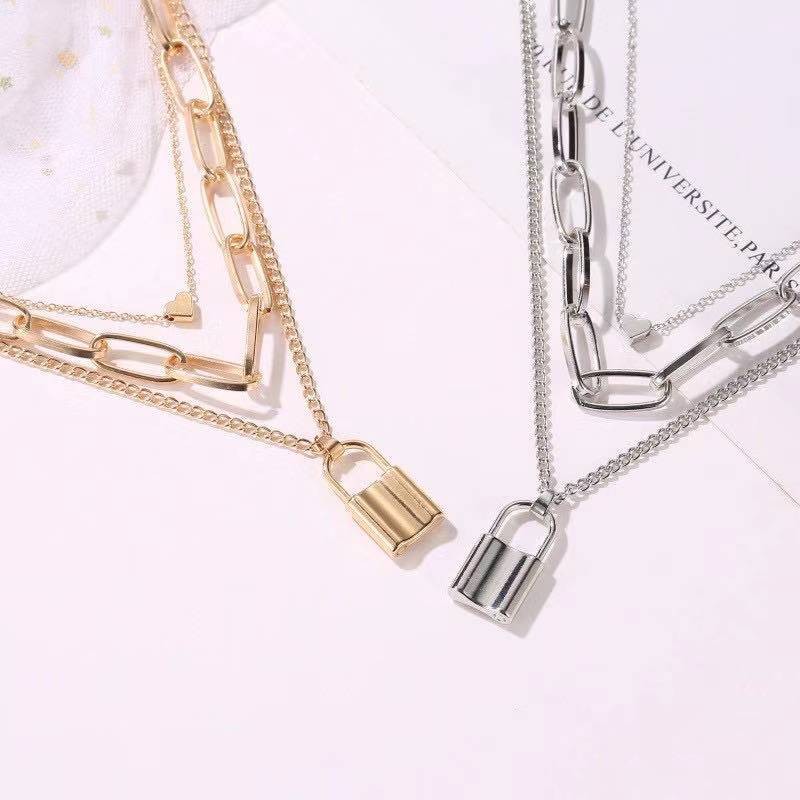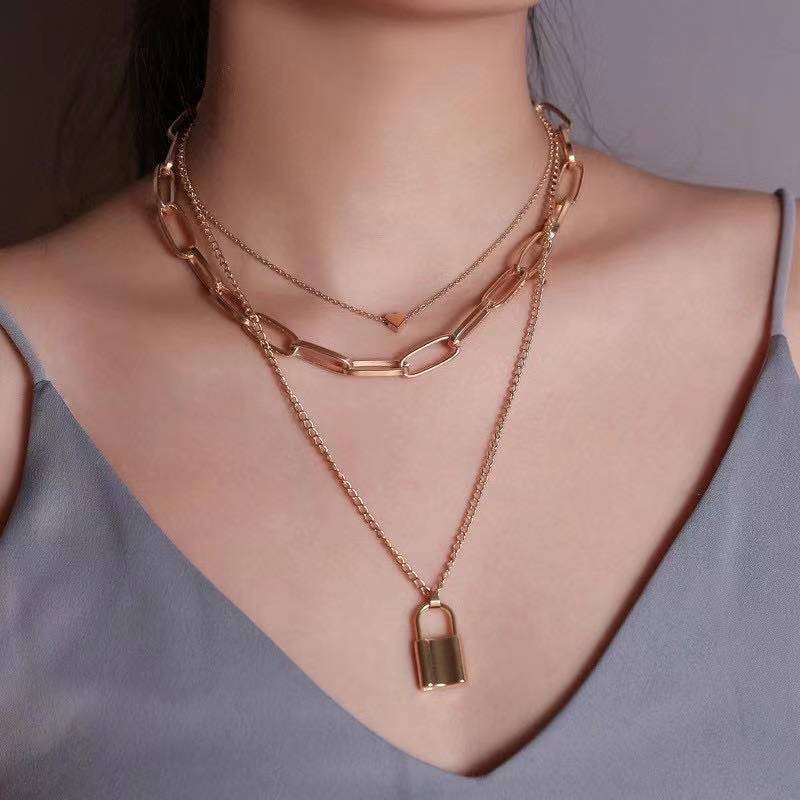 Kekurangan - Kekurangan membeli Kalung Multilayer Retro Heart Lock Liontin Kalung Emas Rantai Sweater Necklace Aksesoris Wanit di Toko ini
