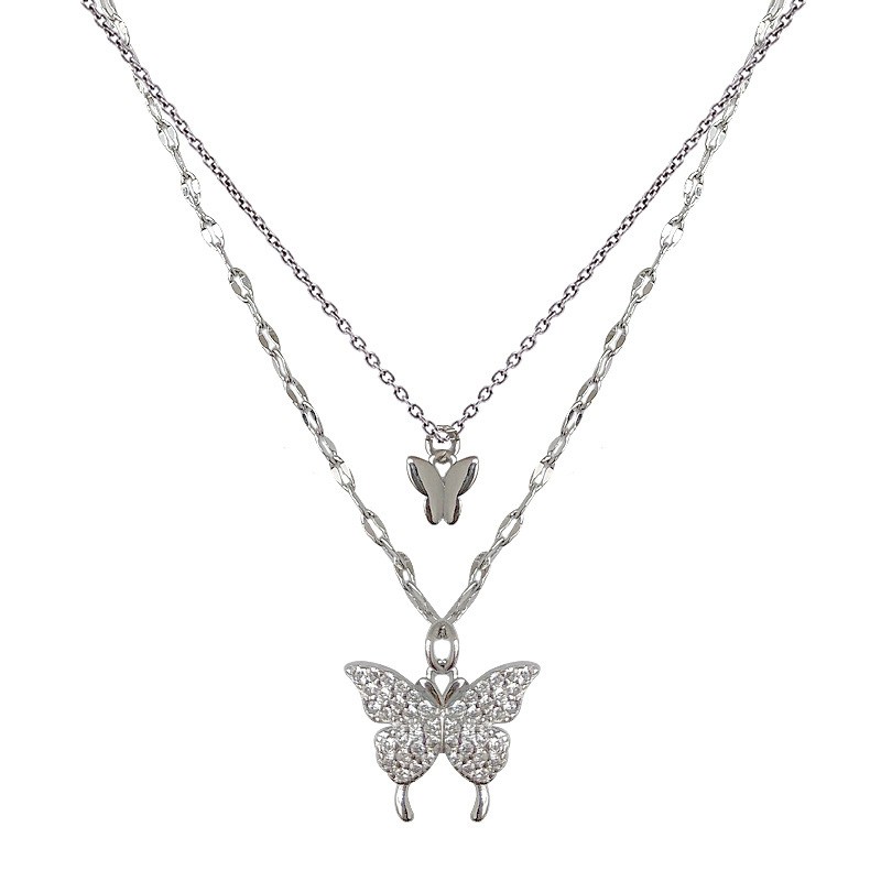 Harga Kalung Rantai Klavikula Desain Kupu-Kupu Ganda Aksen Berlian Gaya Korea
