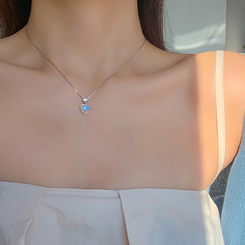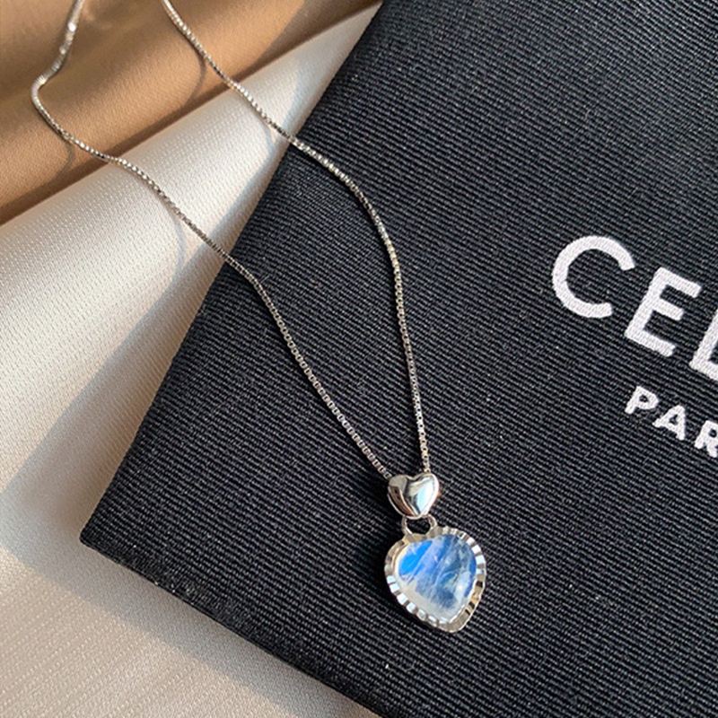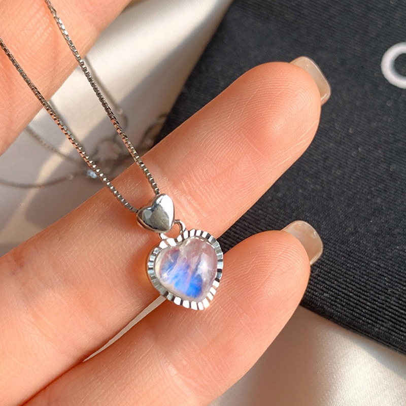 Harga Kalung Rantai Liontin Batu Bulan Imitasi Bentuk Hati Bahan Alloy Untuk Wanita