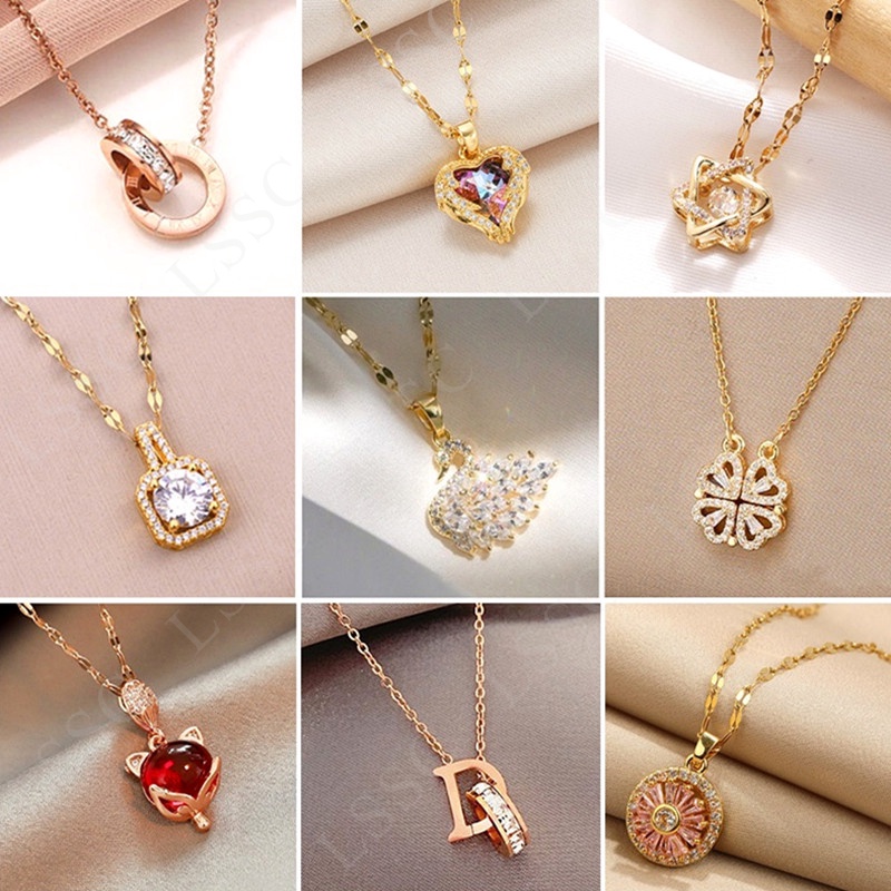 Kalung Titanium Swan Angsa Berlian Kristal Emas 18k Wanita Anti Karat Perhiasan Korea