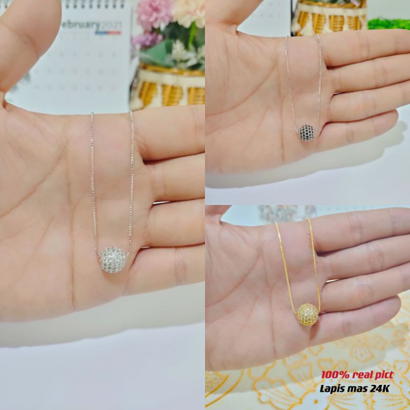 Kalung wanita xuping liotin zirkon bola 24K lapis mas