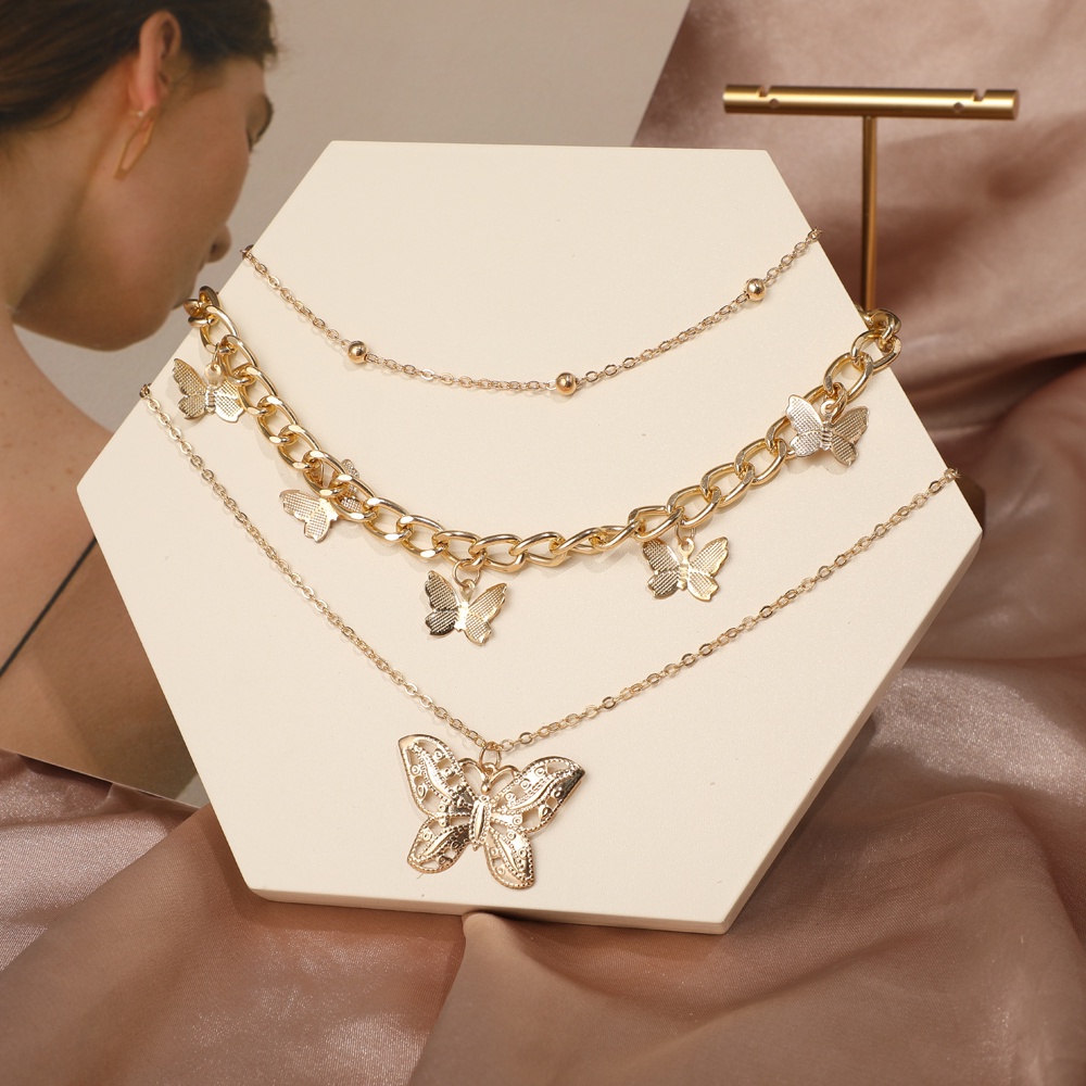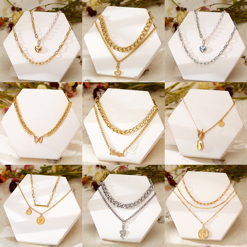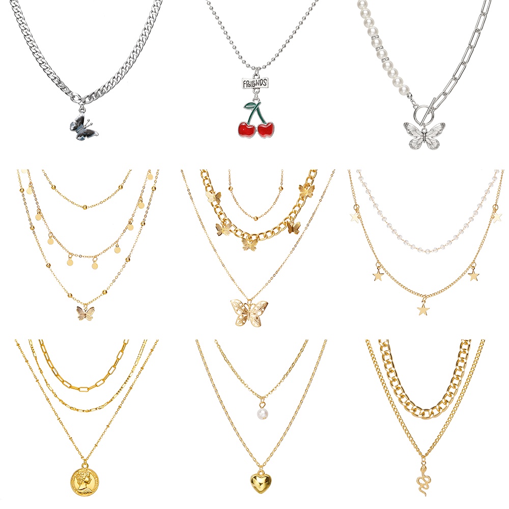 Harga Korean Jewelry Pearl Diamond Butterfly Pendant Multilayer Necklace Fashion Gold Silver Choker Love Star Chain Necklaces Women Accessories
