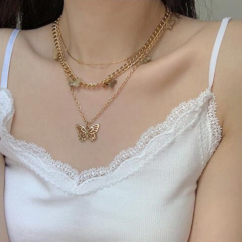 Kekurangan - Kekurangan membeli Korean Jewelry Pearl Diamond Butterfly Pendant Multilayer Necklace Fashion Gold Silver Choker Love Star Chain Necklaces Women Accessories di Toko ini
