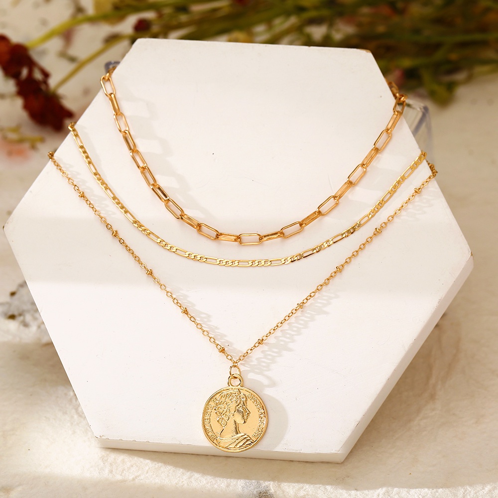 Kalung Wanita Choker Multilayer Pendant Liontin Koin Cantik Fashion Korea Dalika