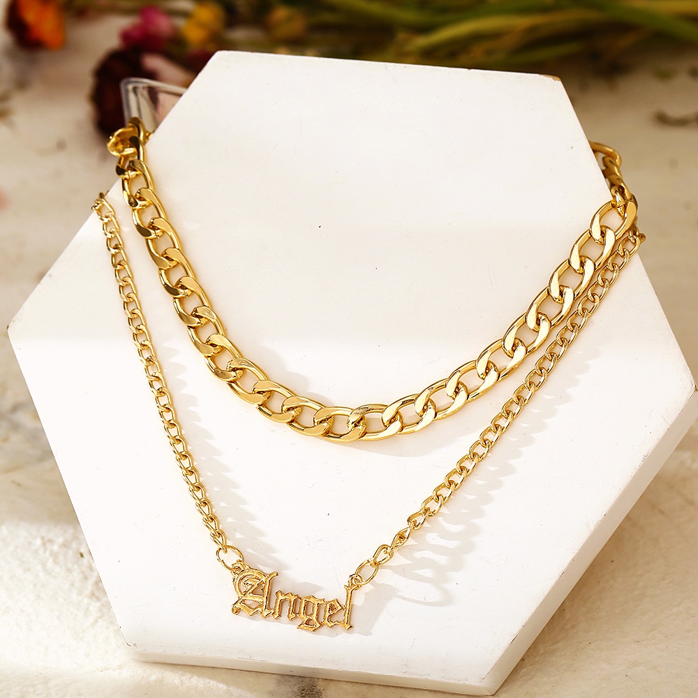 100% Kalung Titanium Anti Karat 18K Emas Alfabet bahasa Inggris Liontin