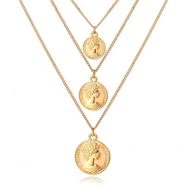 Kekurangan - Kekurangan membeli Mode Retro Emas Alloy Kalung Avatar Segel Wafer Manusia Multi-layer Kalung Wanita Aksesoris Hadiah di Toko ini