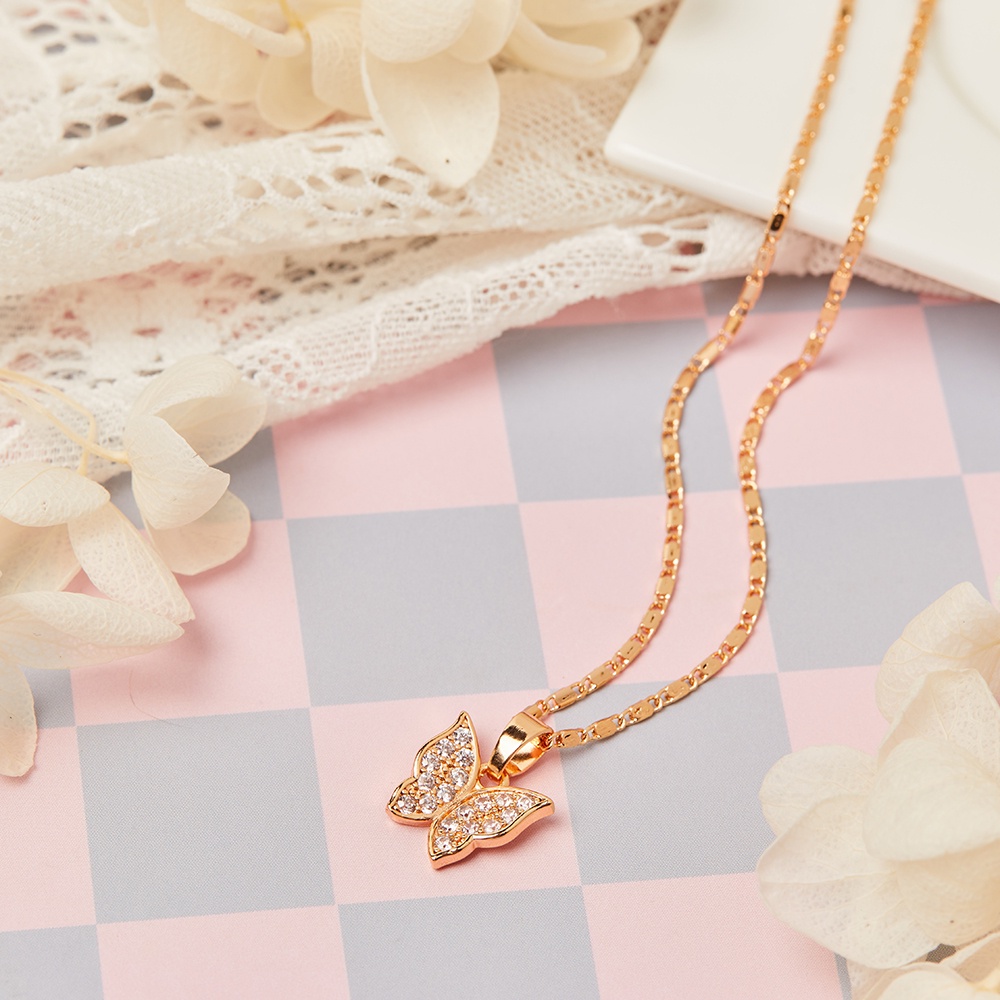 Kalung Wanita Titanium Emas 18k Bentuk Kupu-Kupu Bahan Titanium Steel Untuk Wanita